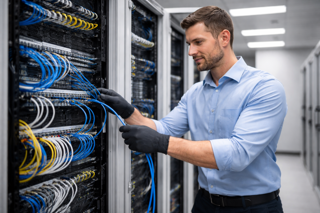 IT infrastructure and structured cabling services supporting office connectivity, network reliability, and technology readiness in business environments.