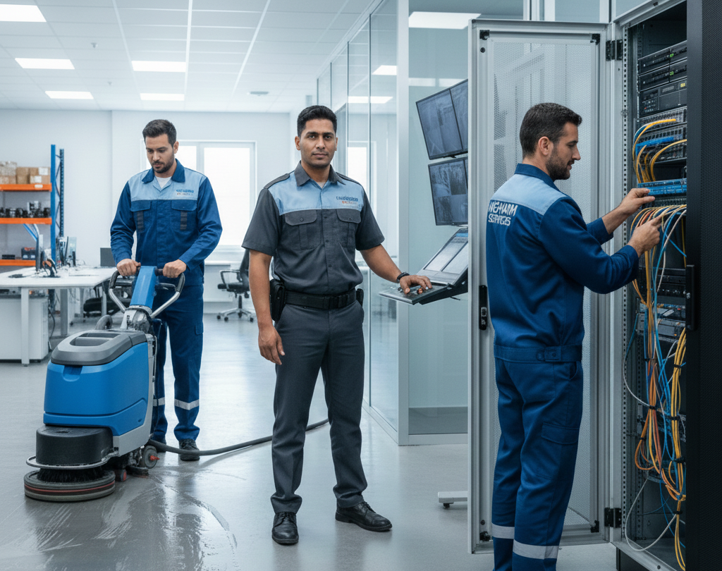 We deliver essential operational services that help commercial facilities maintain security standards, cleanliness, and reliable IT systems required for day-to-day business operations.